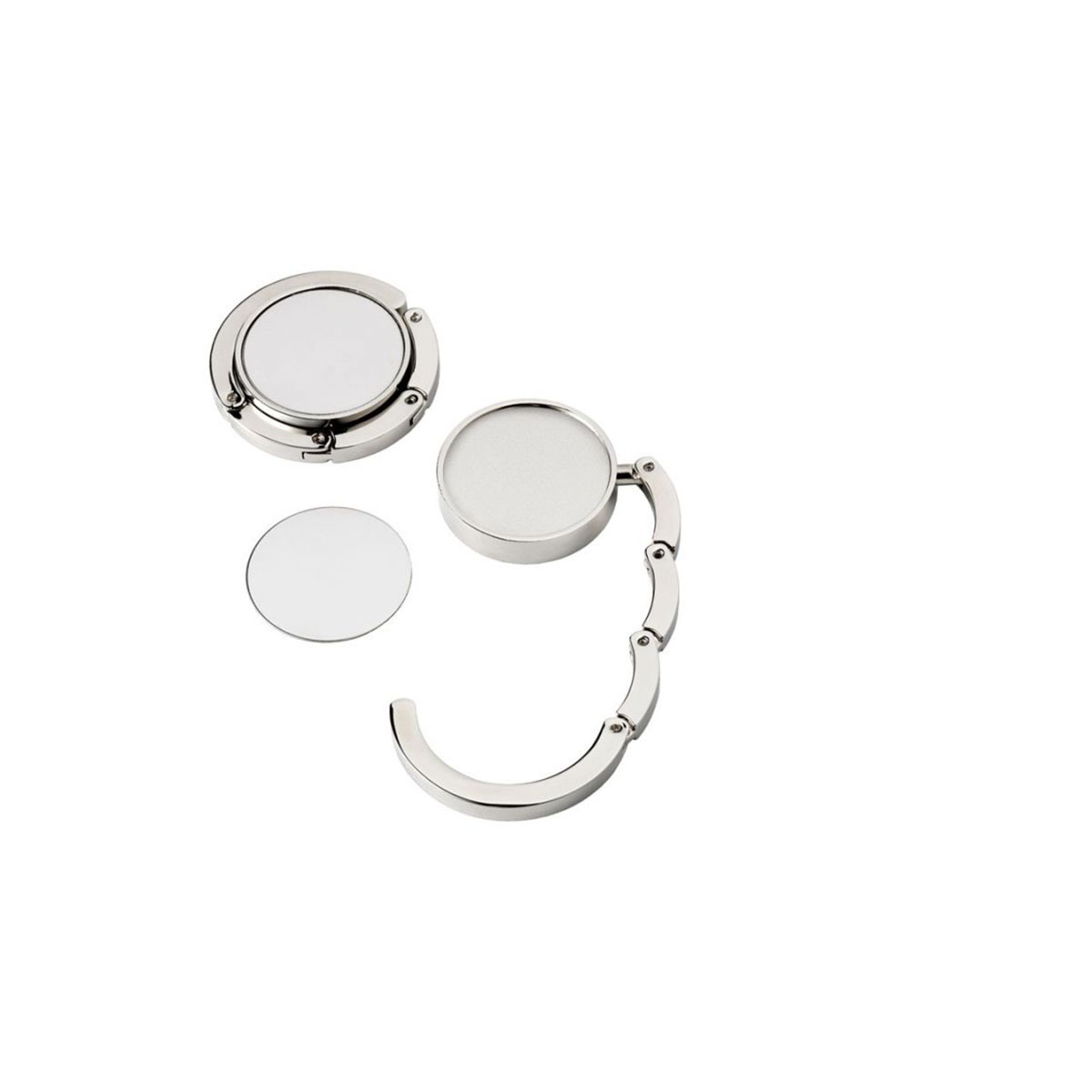 Portaborsa snodato con piastrina in metallo cromato, diametro: 31mm, idonea per lavorazioni con incisori a graffio e laser fibra.