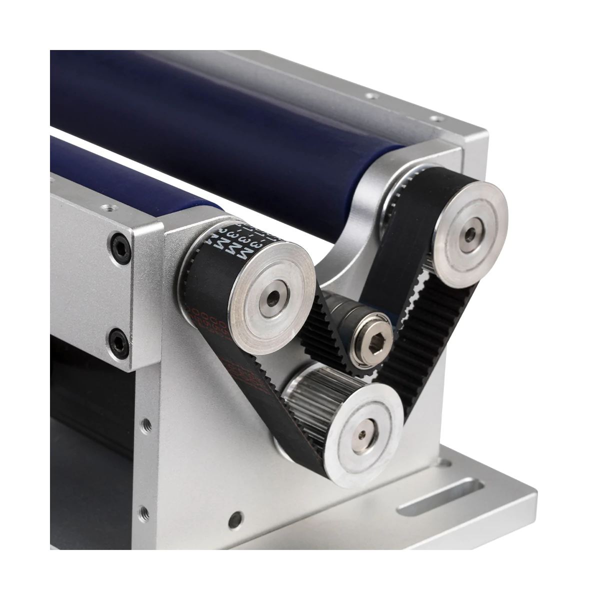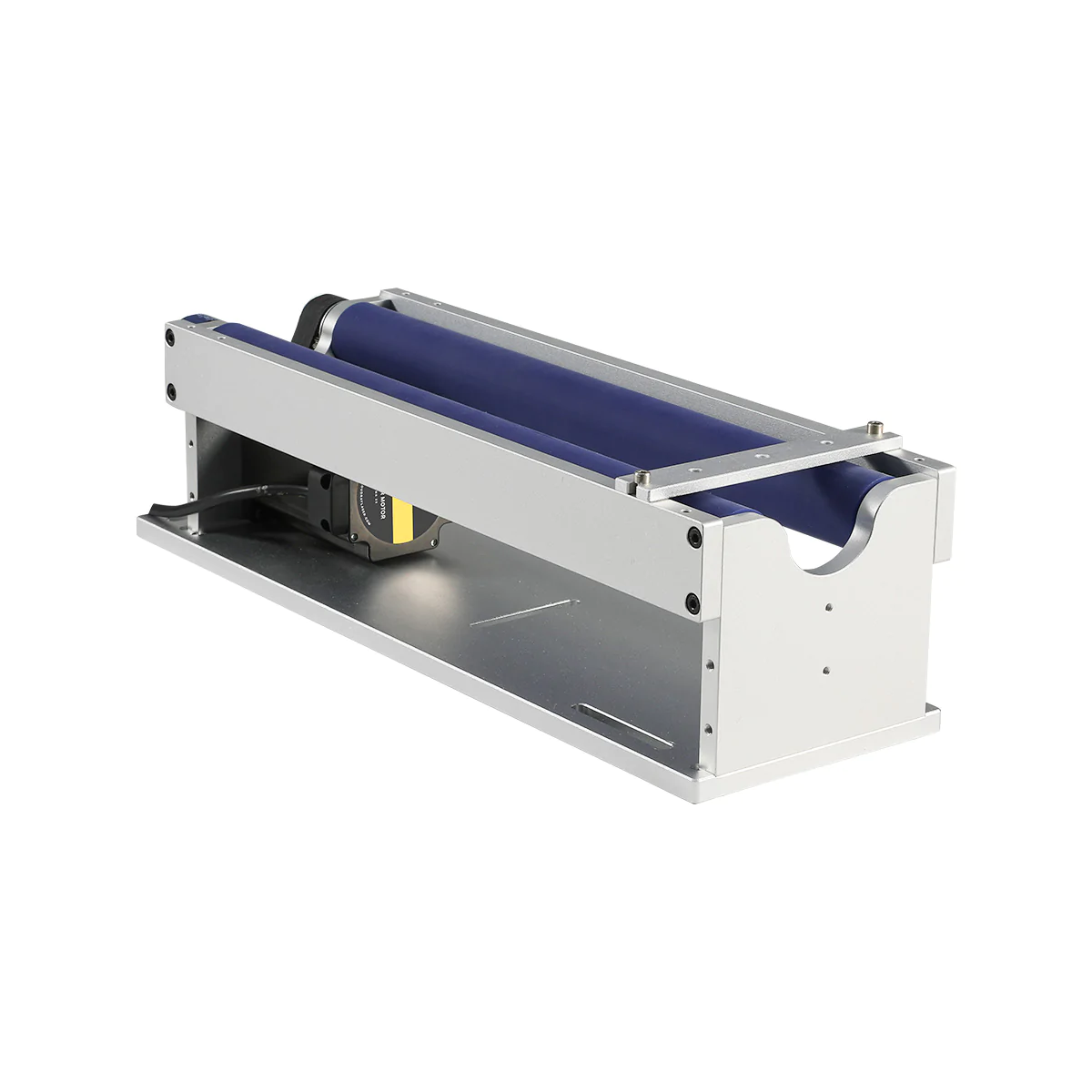 Rotary a rulli la marcatura di borracce e altri oggetti cilindrici con laser fibra. Dotato di supporto per andare a battuta con l'oggetto regolabile in più posizioni in base alla lunghezza dell'oggetto.