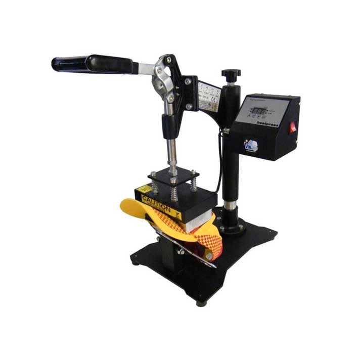 Un'ottima termopressa, con piano di appoggio da 9x15cm e sistema di tensionatura del cappellino, La struttura è stata progettata per rendere più comodo possibile posizionare il pezzo e rimuoverlo, infatti la piastra riscaldante una volta alzata può ruotare lateralmente evitando anche rischi di scottatura.